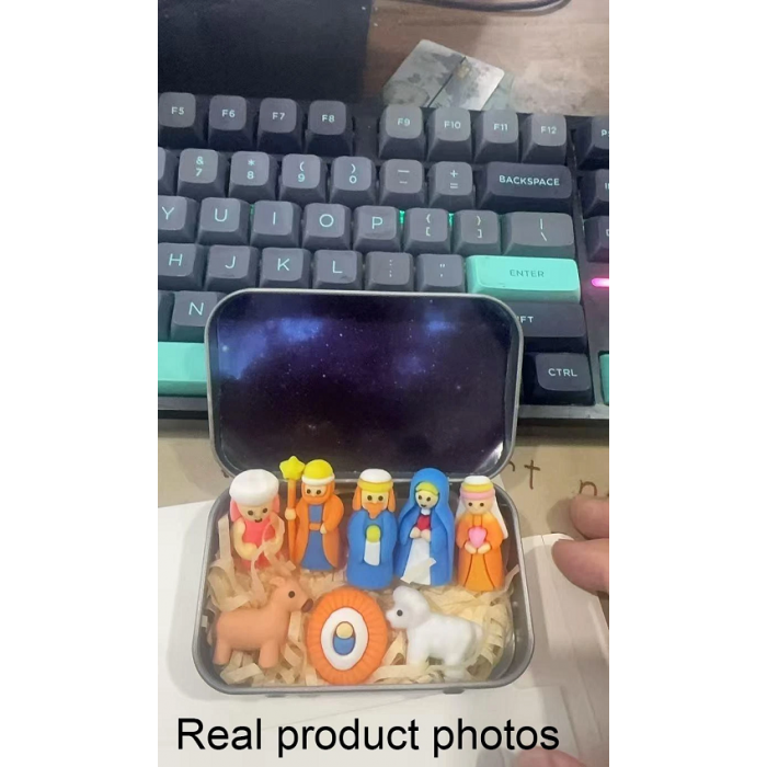 1. Carry your faith companion with you: let the Christmas spirit accompany you! This exquisite and detailed Christmas scene set is cleverly designed to fit perfectly into a pocket size and can be neatly stored in durable metal cans. Whether it's a holiday in a foreign land, a desk decoration, or a warm embellishment on the dashboard in the car, it is the perfect travel companion to convey comfort and commemoration.
