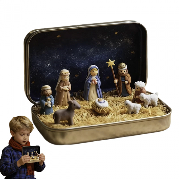 Mini Christmas Nativity Set in a Tin Box,Portable Pocket Nativity Scene Decor 3D