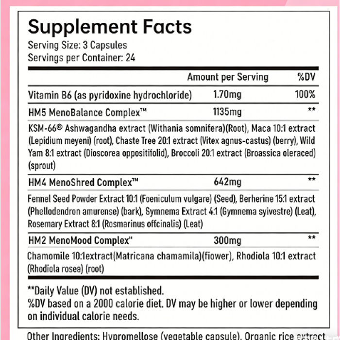 1. Effective relief of menopausal symptoms: Scientific ingredients can alleviate menopausal symptoms such as hot flashes, night sweats, and emotional fluctuations, allowing you to bid farewell to discomfort. Our unique blend formula can work synergistically to help balance and make your transition to menopause easier and more comfortable.
