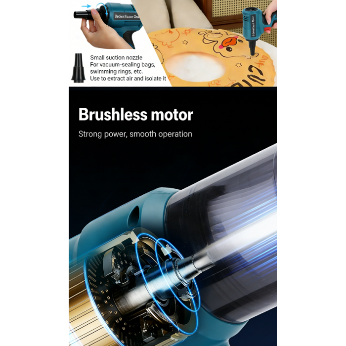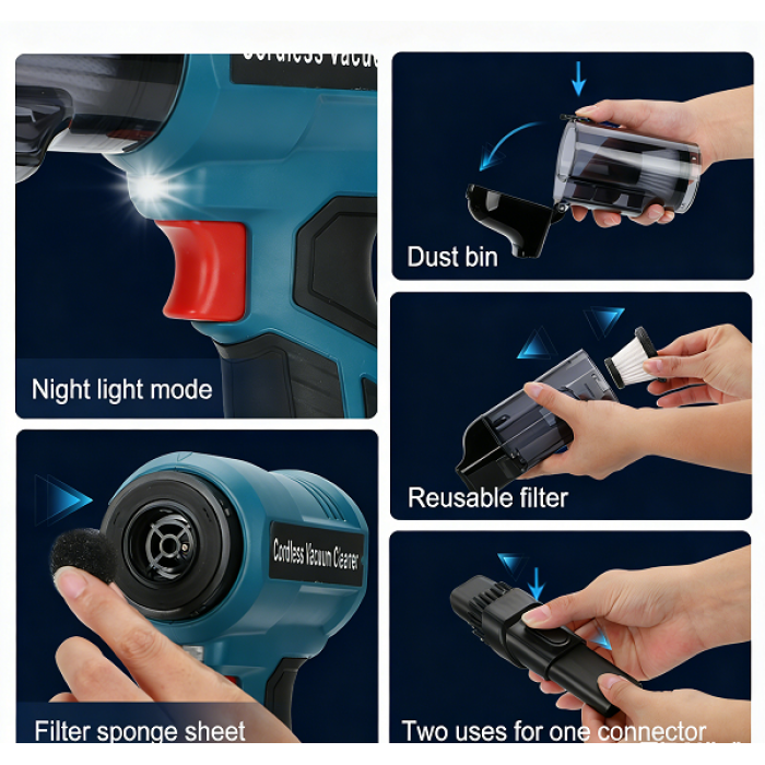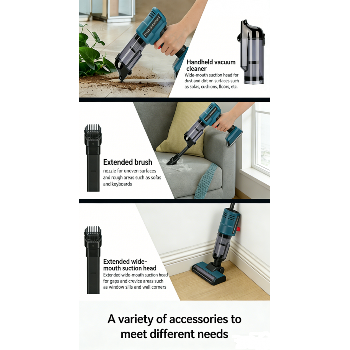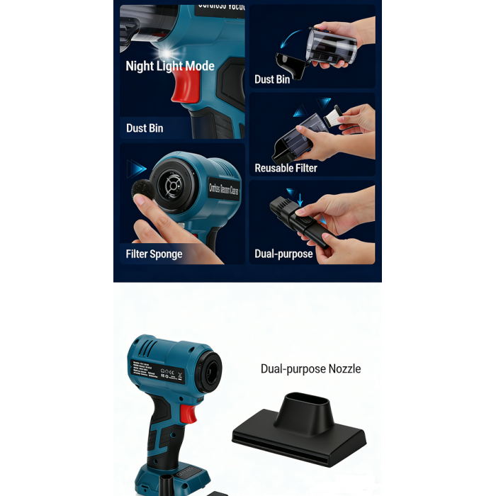 【Versatile 2-in-1 Nozzle 】The included 2-in-1 cleaning nozzle adapts to various surfaces, making it ideal for thorough cleaning in homes, offices, and cars. Efficiently vacuum dust from carpet, keyboards, upholstery, and tight spaces, handling everything from fine particles to larger debris.