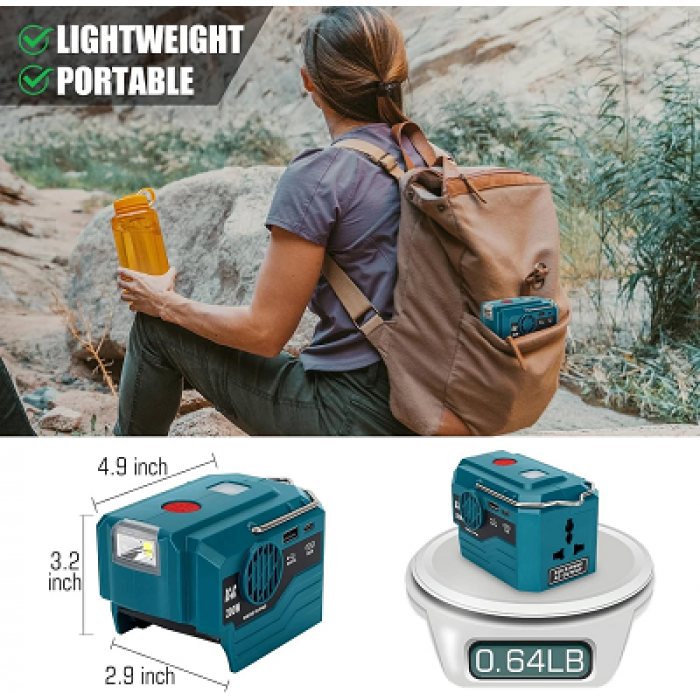【WIDE APPLICATIONS】Portable battery converter 18v, Convenient & Portable(4.9*3.2*2.9 inch, 0.64lb). Suitable for outdoor activities such as jobsites, camping, RV, outdoor party, picnic, fishing, etc. An ideal gift for your family and friends' Birthday, Father's Day, Halloween, Christmas.