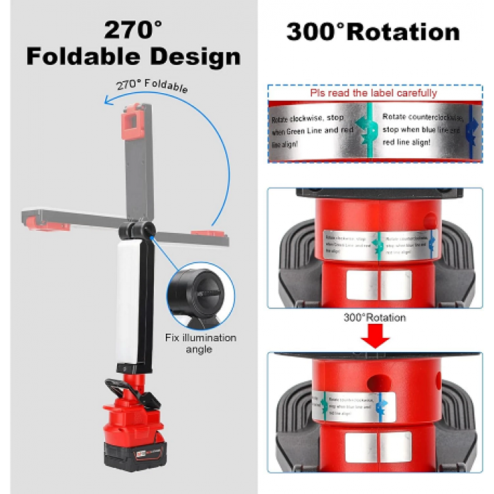 【 AMAZING 300° rotating 】This item for milwaukee light with 300° clockwise rotation and counterclockwise rotation, 110° up and down pivoting projected in multiple directions.